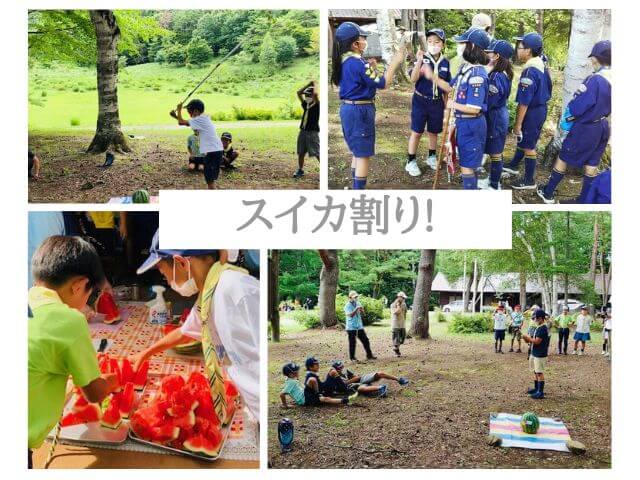 スイカ割りは、うまく当てられないこともあったけど、みんなで声をかけて協力して最後には割れたのでよかったです。