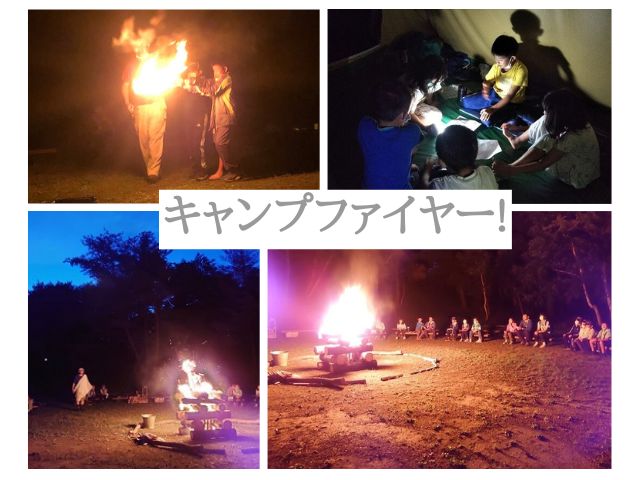 キャンプファイヤーの時に火の神様(隊長)が登場してくれたのが印象的だった。
